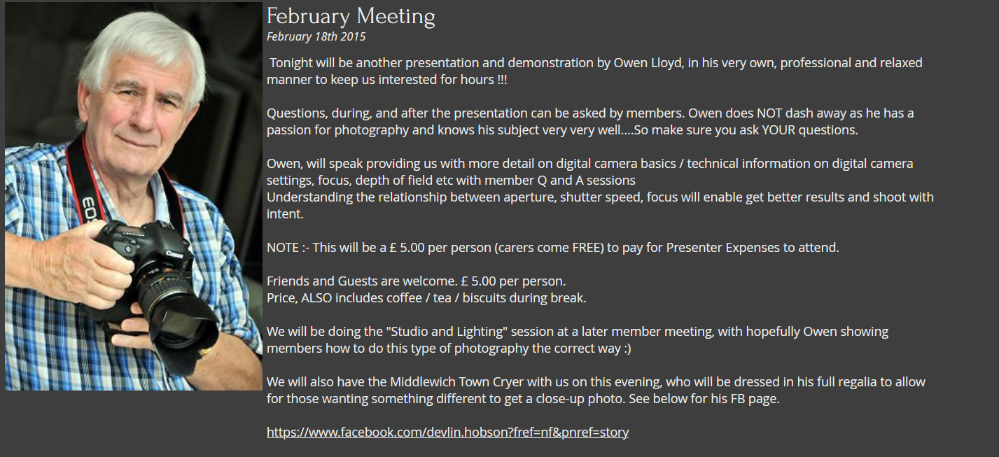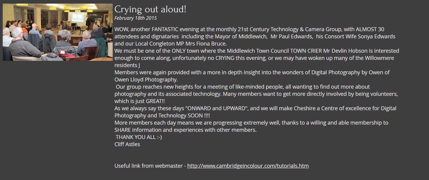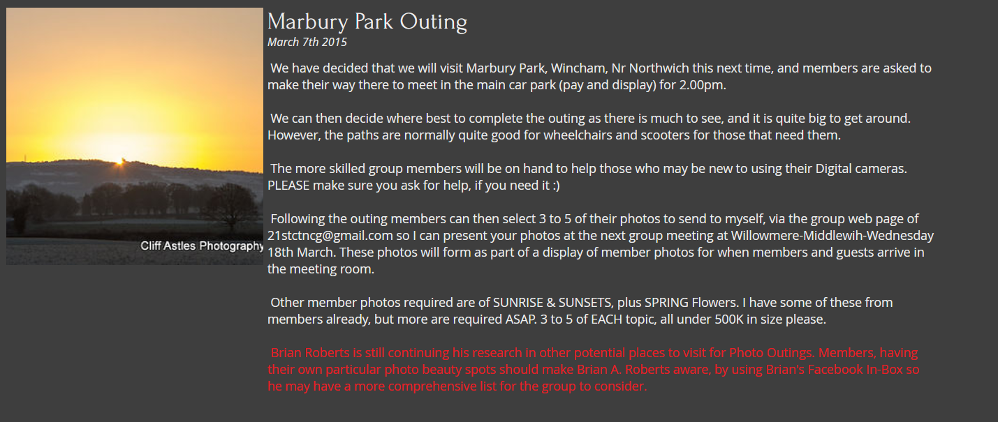 | Photography Group based in Middlewich e-mail: the21stctncg@gmail.com |